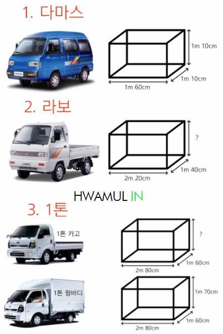 이 중에 보통 중고거래는 주로 다마스, 라보, 1톤 이 3대의 차량으로 이동하게 돼요.