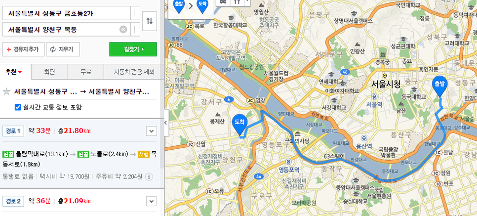 서울 성동구 금호동2가에서 서울 양천구 목동까지